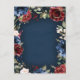 Design features beautiful watercolor floral elements in various shades of red, burgundy, blush pink and more with printed gold coloured geometric flower overlays, greenery. etc. over a navy blue watercolor textured (printed) background.