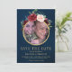 Burgundy Red Navy Floral Rustic Boho Photo Save The Date