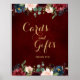 Watercolor Burgundy Red Navy Floral Rustic Boho Wedding Cards and Gifts Sign Poster. Perfect for a fall wedding. The design features a stunning bouquet of burgundy / Marsala , peach , navy flowers / roses with matching leaves. Please find more matching designs and variations in my "blissweddingpaperie" store. And feel free to contact me for any custom requests.