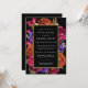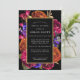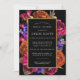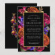 Elegant and bold modern floral contains purple, orange and pink flowers on a black background. This bold botanical surrounds a round gold frame. Your bridal shower details are in bright white. The back of the invitation features LOVE written in decorative letters and embellished with flowers. This bridal shower invitation is part of the Midnight Bridal Shower Collection. Feel free to message me if you need help finding matching items.