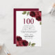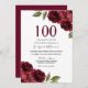 Burgundy Red Rose Floral Womans 100th Birthday Invitation