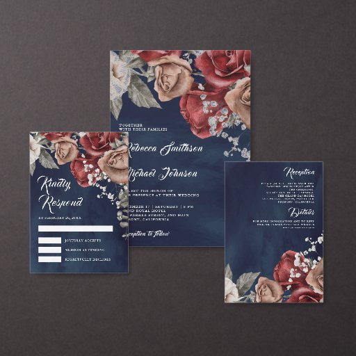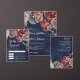 Burgundy Red Roses Floral Navy Blue Wedding Menu
