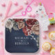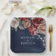 Burgundy Red Roses Floral Navy Blue Wedding Paper Plate