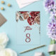 Elegant burgundy floral theme wedding table number featuring beautiful flowers.