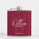 Burgundy Red Script Personalised Groomsman's Name Hip Flask