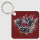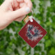 Burgundy Red Silver Glitter Feathered Mask Key Ring