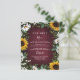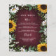 Template design features a burgundy red barn wood background decorated with a watercolor wreath of daisies, sunflowers, greenery, eucalyptus, baby's breath, and lily of the valley. This botanical design features a matching garden wreath on the back. View the collection on this page to find coordinating items.