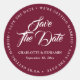 Burgundy Red Typography Wedding Save The Date Classic Round Sticker