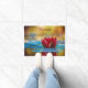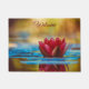 Burgundy Red water lily on blue water and against golden background Welcome Mat for a touch of colour at your doorstep!