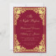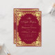 This elegant burgundy and gold rehearsal dinner invitation with a vintage air has an ornate faux gold foil frame with elegant baroque golden decorations on a burgundy background. the title, the occasion and the name are written in elegant calligraphy. All text can be personalised and has a golden yellow colour similar to the faux gold frame.
