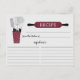 Fun retro bridal shower kitchen recipe cards featuring a burgundy rolling pin & kitchen tools. The front of our recipe card offers room for a recipe title, from the kitchen of and ingredients space. Flip our recipe card over to view our lined back for recipe directions. Visit our shop for matching bridal shower invitations & recipe binders available in our shop in a large assortment of popular wedding shower colours. Perfect bridal shower invitation insert for a stock the kitchen bridal shower.
