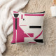 Featured is a bold, geometric, abstract design, composed of shapes and lines in burgundy rose and black on an off-white background,,created in the spirit of the Mid-Century Modern style and projecting a figure-like image in a contemporary and artistic look. This is a colourful and minimalist design n the simple lines and contrasting tones. There is also somewhat of tribal art look, even that of a contemporary abstract art painting. The design projects a sophisticated, polished quality for living area, bedroom, workspace, terrace, or patio decor, which also offers a feeling of warmth, a relaxed and peaceful ambience for your personal home space, a place for retreat and contemplation while away from the noisy everyday world. There is much decorative potential in this accent piece, which fits in with a numerous styles, from retro/vintage to rustic ranch to modern urban loft or high rise.