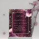 A deep burgundy background decorated with burgundy and pink florals, flowers and faux silver glitter, sparkles. Personalise and add your name and party details. Rose gold coloured text.