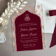 Burgundy Rose Gold Damask Arch Muslim Wedding Acrylic Invitations