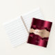 Burgundy, rose gold metal and agate, marble stone print as background. Personalise and add your name. The name is written with a modern hand lettered style script.