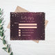 A burgundy background, decorated with rose gold faux sparkles. Personalise and add the reply by date.