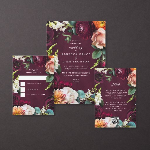 Burgundy Rose and Ranunculus Wedding StationeryDesigned by Becky Nimoy
