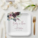Fall Baby in Bloom theme baby shower plates, featuring a watercolor bouquet of burgundy and peach roses with green leaves. "Baby in bloom" is in burgundy modern handwritten style font. Personalise with your details.