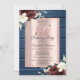 Burgundy Roses,Blue Wood Rose Gold 50th Birthday Invitation