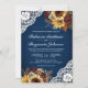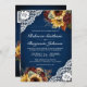 Burgundy Roses Sunflower Navy Lace QR Code Wedding Invitation