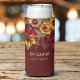 Fall in love bridal shower favours bridal party gifts Burgundy roses yellow sunflowers greenery burgundy background personalised can coolers.
