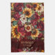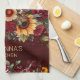Fall autumn themed burgundy roses yellow sunflowers greenery burgundy background personalised kitchen towels, personalised gifts