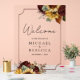 Amaze your guests with this elegant wedding welcome sign featuring rustic flowers bouquet and modern typography.