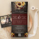 Burgundy Roses Sunflowers Wood QR Code Wedding Tri-Fold Invitation