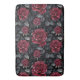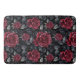 Pretty burgundy roses and foliage with a black background seamless floral pattern bath mat.