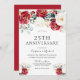 Burgundy Ruby Red White 25th Wedding Anniversary Invitation
