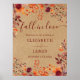 This modern, elegant rustic fall watercolor fall-in-love wedding welcome sign can be personalised with your information in stylish burgundy typography on a kraft paper background. Designed by Thisisnotme©