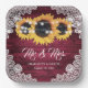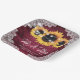 Burgundy Rustic Wood Lace Sunflower Wedding Paper Plate