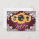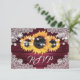 Burgundy Rustic Wood Lace Sunflower Wedding RSVP Card