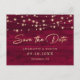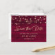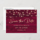 Burgundy Rustic Wood String Lights Save The Date Announcement Postcard