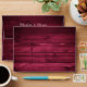 Personalised burgundy rustic wood and sunflowers wedding envelopes with a return address. Our burgundy envelopes feature sunflower flowers and string lights on a barn wood background. Matching items available.