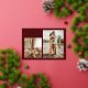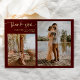 Modern simple and elegant brush script horizontal layout with 5 photos collage grid wedding thank you on red burgundy with real gold foil