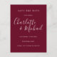 Featuring signature style names, this elegant burgundy and white save the date card can be personalised with your special wedding day information in chic lettering. Designed by Thisisnotme©