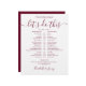 This stylish burgundy and white wedding schedule timeline can be personalised with your wedding details in chic burgundy lettering. Designed by Thisisnotme©