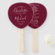 The fans are very pretty and easy to assemble. We utilized the original template and just inserted the names of our wedding party. After the product arrived we noted they read,”Made of Honor” rather than “Maid of Honor”. Upon re-checking the website we noticed the typo is in the original template and was not a mistake on our end. It is too late to return because our wedding is in just a few days but if we had time we would certainly request an exchange. See review above regarding typo.