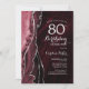 Burgundy and silver agate 80th birthday party invitation. Elegant modern design featuring dark red marsala wine watercolor agate marble geode background, faux glitter silver and typography script font. Trendy invite card perfect for a stylish women's bday celebration. Printed Zazzle invitations or instant download digital printable template.