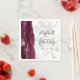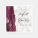 These elegant modern wedding napkins feature a burgundy watercolor agate design trimmed with faux silver glitter. Easily customise the black date on a grey and white marble background, along with the names of the bride and groom in black handwriting calligraphy over a large, pale grey ampersand.
