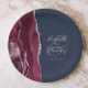 Burgundy Silver Agate Navy Blue Wedding Paper Plate