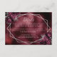 This elegant modern wedding details enclosure card features a silver geometric frame decorated with burgundy and silver flowers on a dark burgundy faux foil background image. The customisable text combines silver grey whimsical handwriting and copperplate fonts. The reverse side features the same burgundy faux foil design.