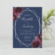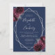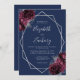 Burgundy Silver Floral Navy Blue Wedding Invitation