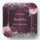 Burgundy background decorated with burgundy and blush pink florals, flowers, and faux silver glitter, sparkles. Personalise and your name and the date.