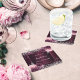 Burgundy silver florals birthday square paper coaster