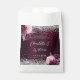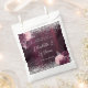 Burgundy background decorated with burgundy and blush pink florals, flowers, and faux silver confetti. Personalise and your names and the wedding date.
