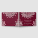 Elegant Burgundy Guest Book with an intricate faux silver glitter Mandala floral design representing the blossoming of Purity within our Soul. The colour Burgundy increases energy in a thoughtful, dignified and controlled way. Encourages feelings of warmth and comfort. You can change the text from the Personalise Menu. Original Design by SunFreeStar.