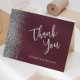 Burgundy Silver Glitter Script Wedding Thank You Card