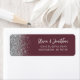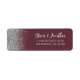 The left-hand edge of this elegant modern wedding return address label features a silver faux glitter design. The customisable text combines silver grey handwriting and sans serif fonts on a dark burgundy red background.
